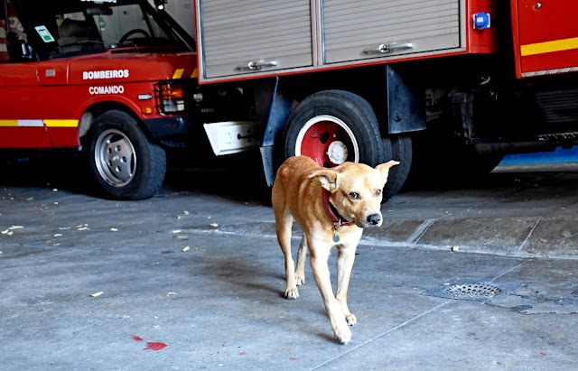 O Alerta, a mascote dos Bombeiros Voluntários Lisbonenses, fazendo uma sesta.