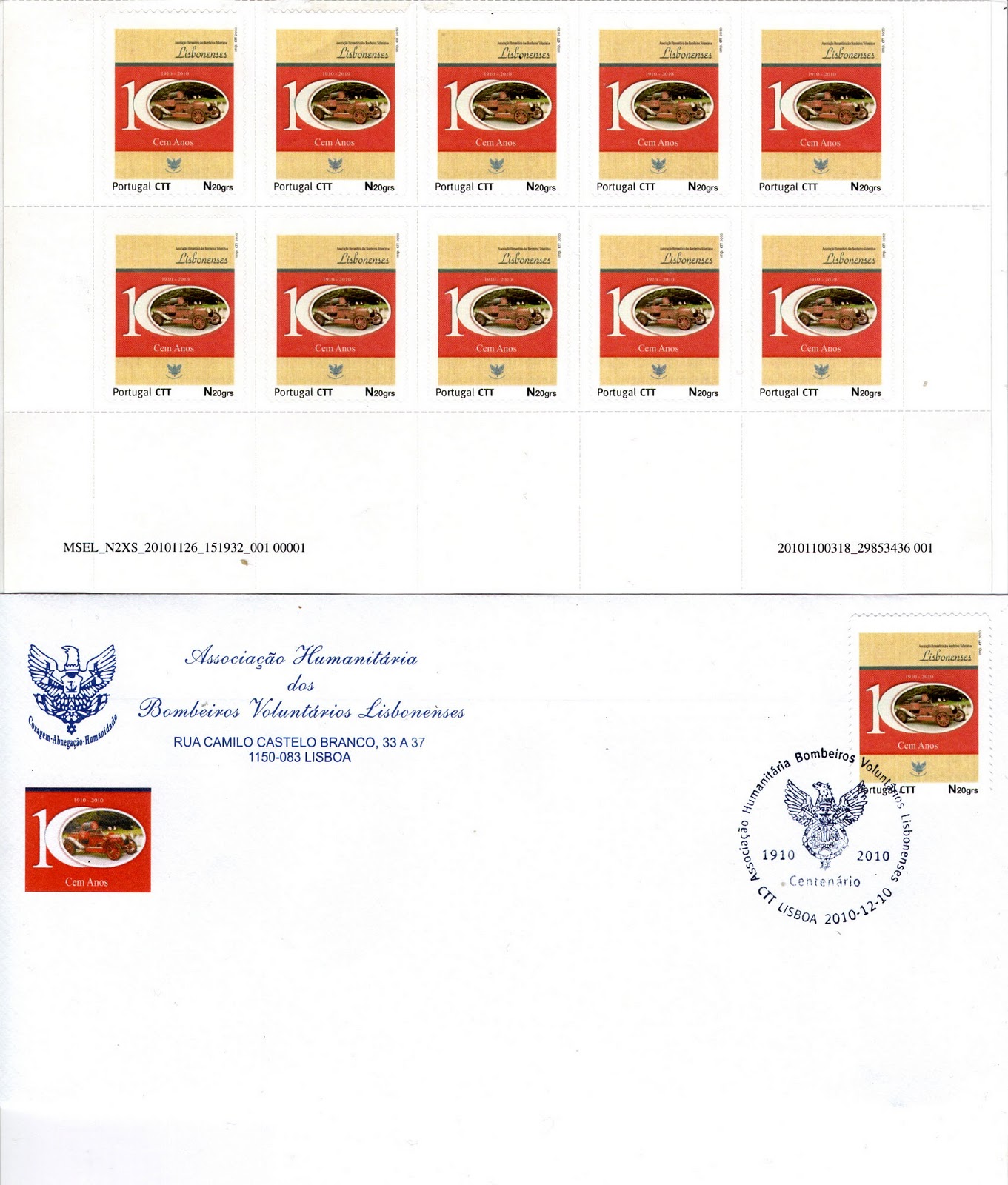 Dia 10 de Dezembro de 2010, dia da emissão de selo e  carimbo comemorativo dos 100 anos dos Bombeiros Voluntários Lisbonenses.