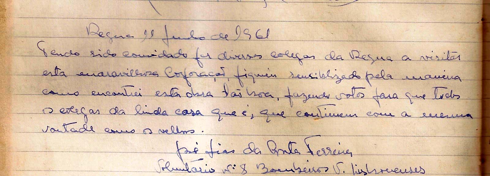 Em 11 de Junho de 1961, a convite de diversos colegas da Régua, o bombeiro nº 8 José Dias da Costa Ferreira, dos Bombeiros Lisbonenses, esteve de visita à "maravilhosa corporação" do Peso da Régua.