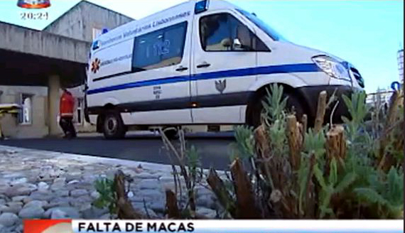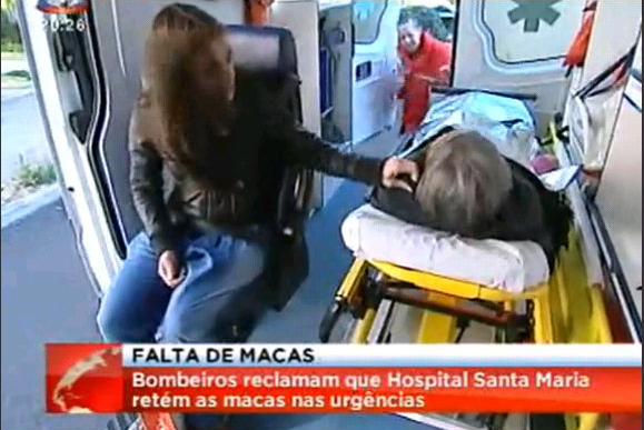 Foto de uma reportagem da SIC (hoje), com uma ambulância dos B.Lisbonenses sobre a retenção de macas